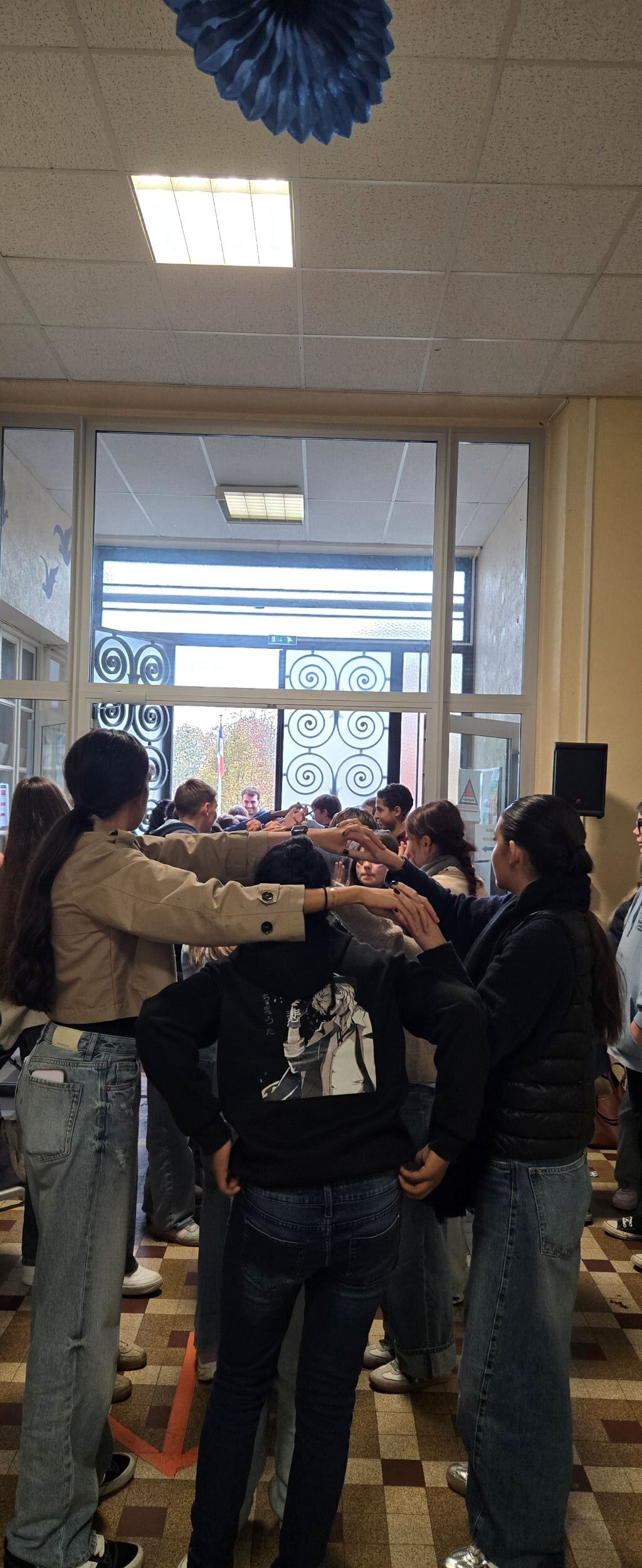 Jeudi 6 novembre: journée “tous en bleu“, distribution de bracelets bleus, signature de la charte d’engagement “non au harcèlement, mur d’expression et une chaîne solidaire humaine dans le bâtiment du collège et sous le préau du lycée a remplacé la course relais en raison du temps.